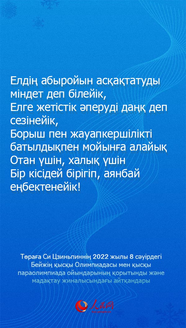 Т?ра?а Си Цзиньпинн?? Бейж?? ?ыс?ы Олимпиадасы мен ?ыс?ы параолимпиада ойындарыны? ?орытынды ж?не мада?тау жиналысында?ы айт?андары (6)