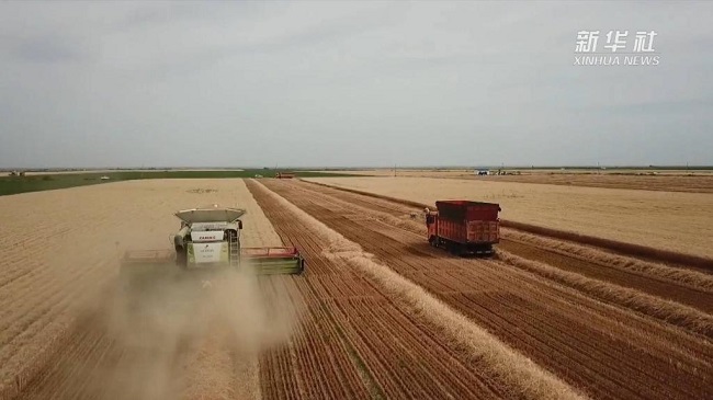 Шонжы ауданы ?нд?рген бидай Шы?жа?ны? жалпы бидай ?н?м?н?? оннан б?р б?л?г?н ??райды. М?нда к?п пайдаланатын комбайнны? ??ны 5 миллион юаннан асады, ол са?атына 40-50 гектар бидай ал?абын жинай алады, б?л 3-4 футбол ала?ыны? ауданына те?. Е? бастысы, комбайнмен орыл?ан бидай шашылып ысырап болмайды ?р? ?г?т?лмейд?.