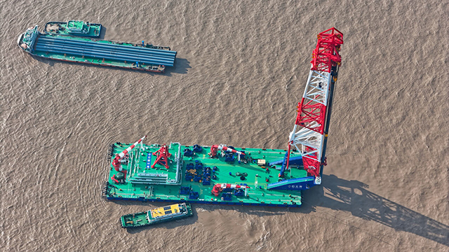 ?лемдег? е? ?лкен д??гек орнату кемес? Ханчжоу шы?ана?ы ар?ылы ?тет?н Те??з тем?ржол к?п?р?н?? ??рылысына ?атысты